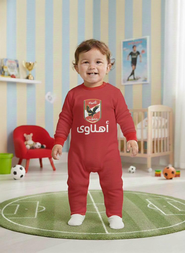 بدلة الأطفال الناعمة والمريحة هذه مصممة باللون الأحمر المميز لفريق الأهلي، مع إغلاق سهل بكبسون لتغيير الحفاضات بسرعة. مثالية لأيام المباريات، والنزهات العائلية، أو كهدية مميزة للآباء والأمهات المحبين لكرة القدم.